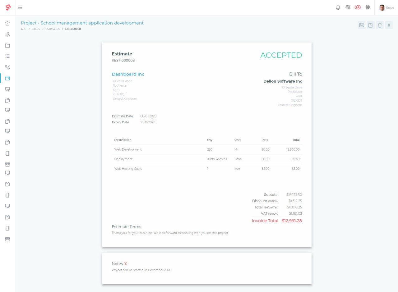 Project and estimate workflow automation allow you to automate repetitive tasks. You can determine what happens when an estimate has been accepted by your client or what happens when a project has been marked as completed. Automations improve your team’s productivity and help to ensure that nothing is missed in your workflow.