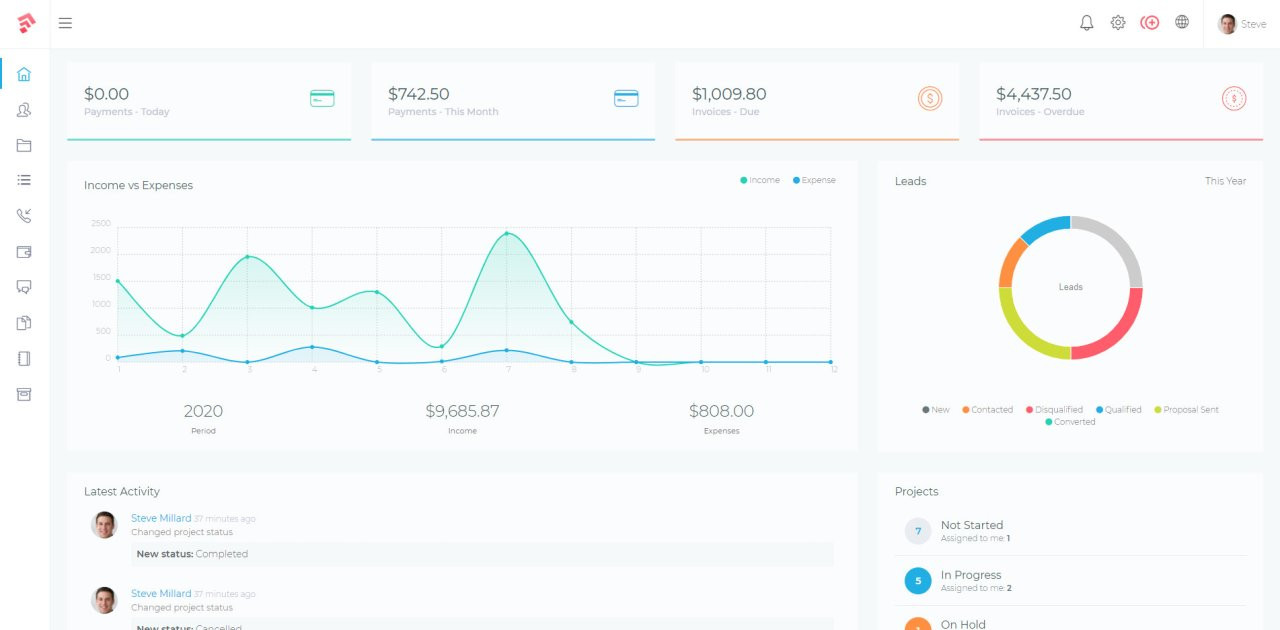 Keep track of the amount of time that you spend on your projects, The CRM comes with a full-featured time-tracking solution. You can start and stop your timer or manually record the time spent working on a task. You can then easily bill your clients for the time recorded.